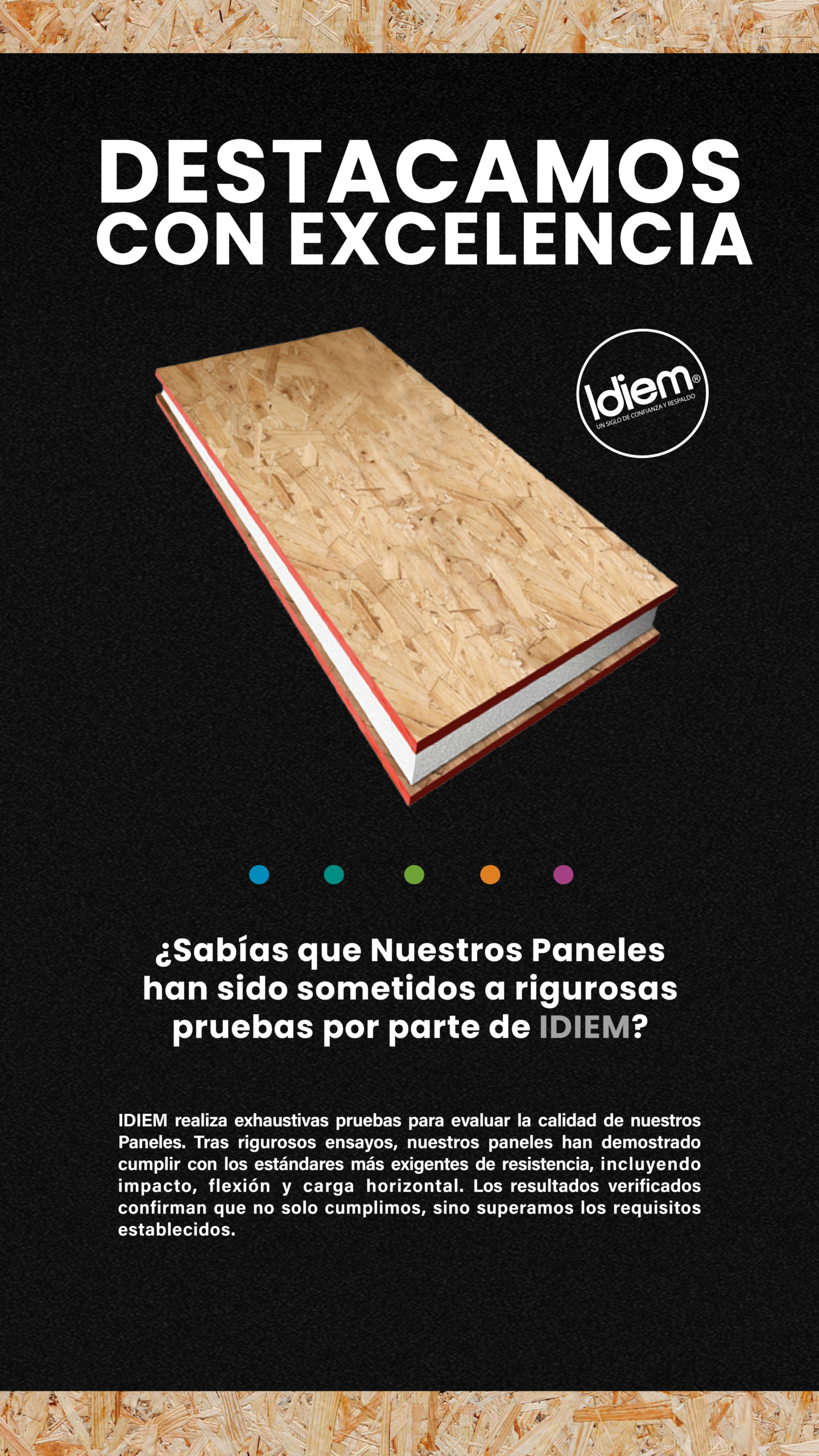 En español, PANEL ESTRUCTURAL ISOTÉRMICO consiste en dos placas de OSB APA + un alma de EPS. Se caracteriza por su potente aislación térmica, potente estructura y rápido armado.